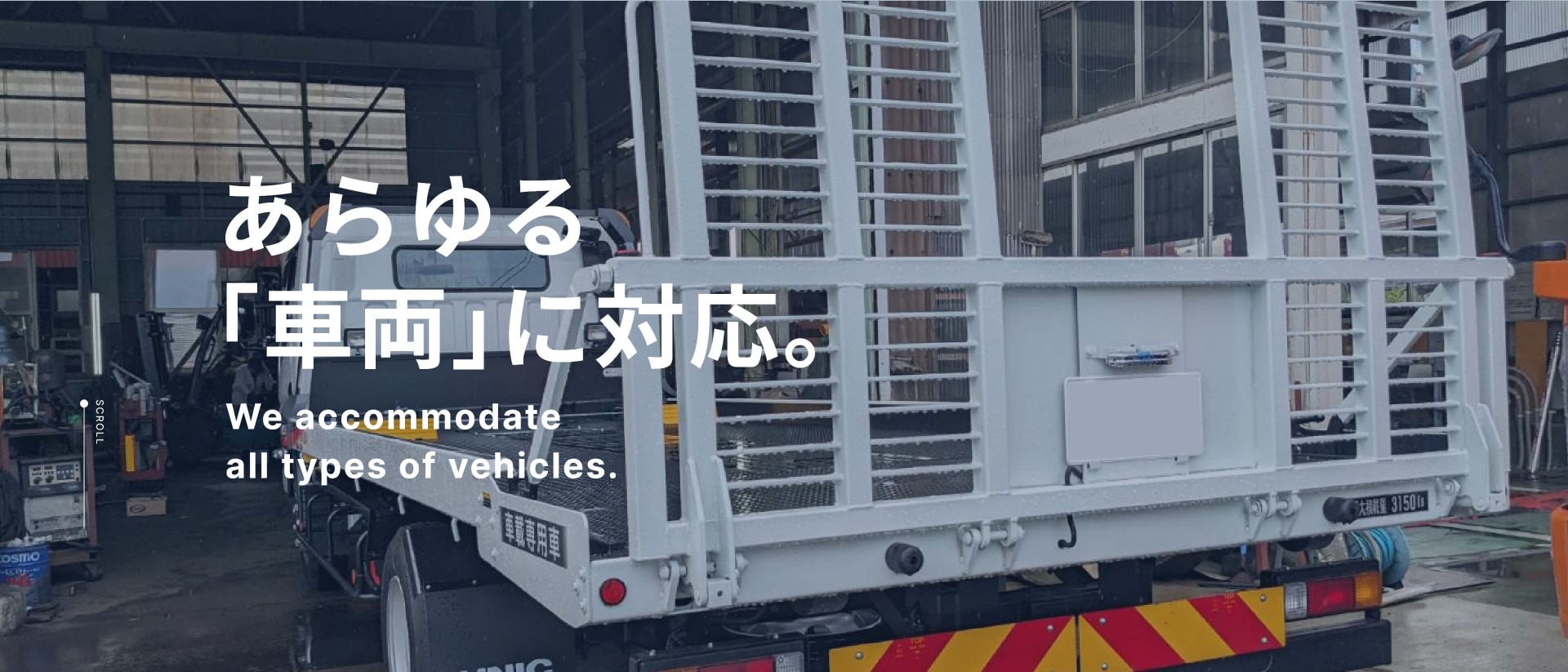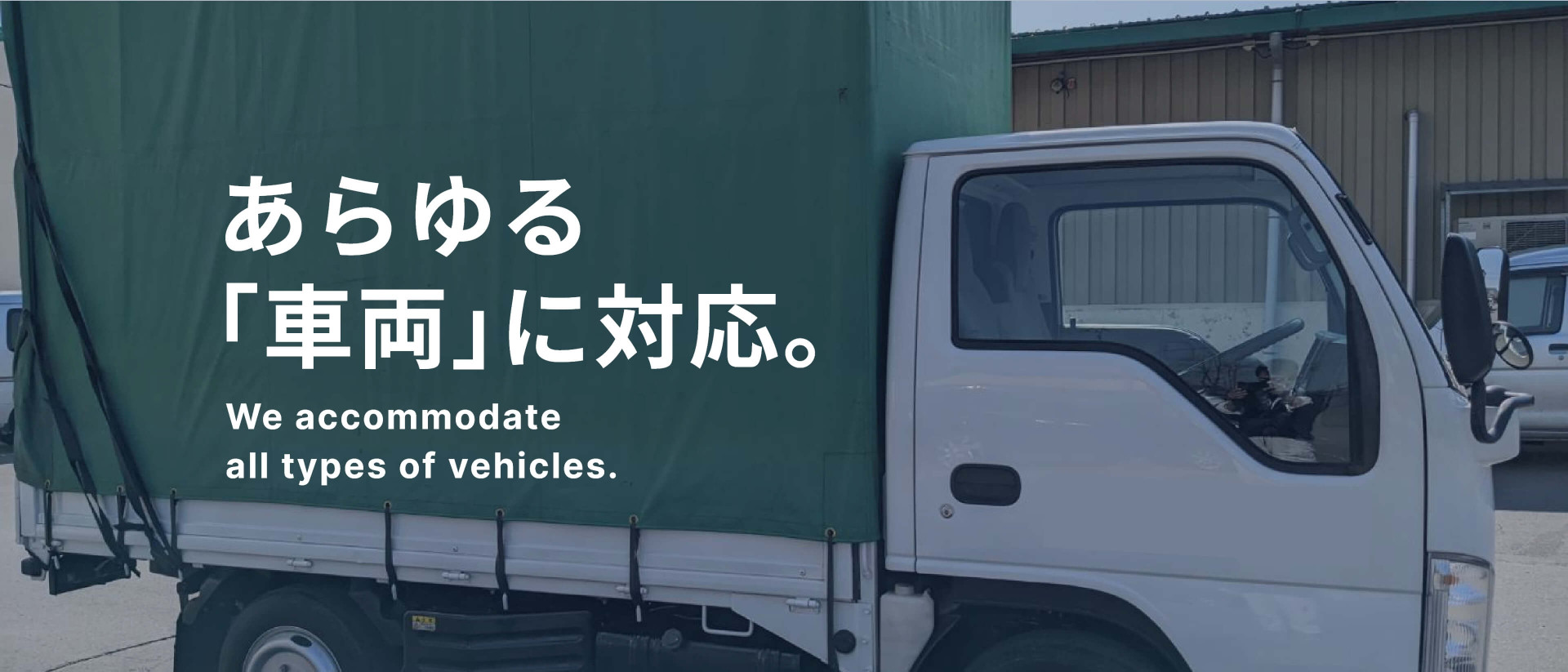 2トン・4トントラック、軽トラック、農業用車両の運搬車まで、幅広い車両を取り扱い、お客様のニーズに最適な一台をご提案します。